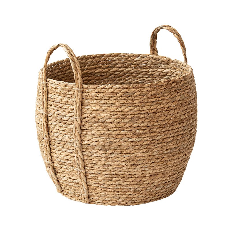 A hand-woven storage basket in a pastoral style