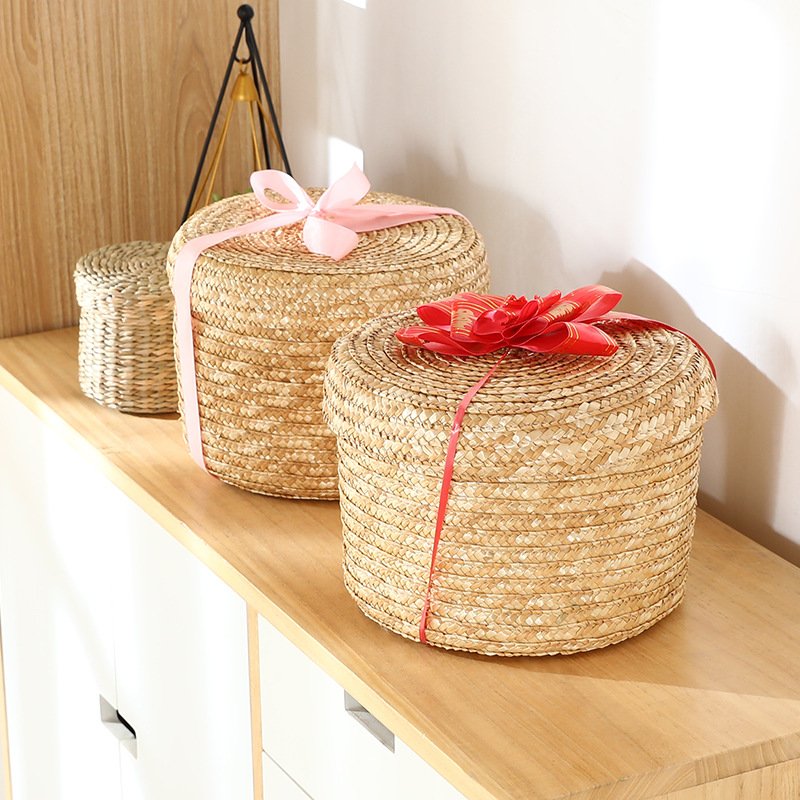 1. Hand – woven storage box with a lid and a decorative bow, perfect for keeping small jewelry, trinkets, or keepsakes safe and neatly stored.