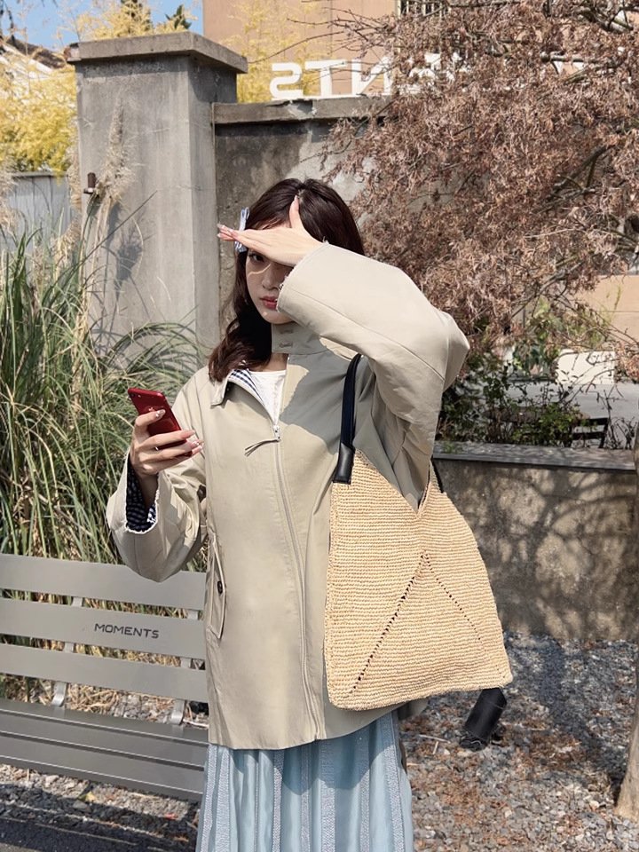 - Raffia – made woven bag with a structured, angular design and durable handles, ideal for organizing items such as a wallet, sunglasses, and a small umbrella, blending functionality with an avant – garde, minimalist charm.