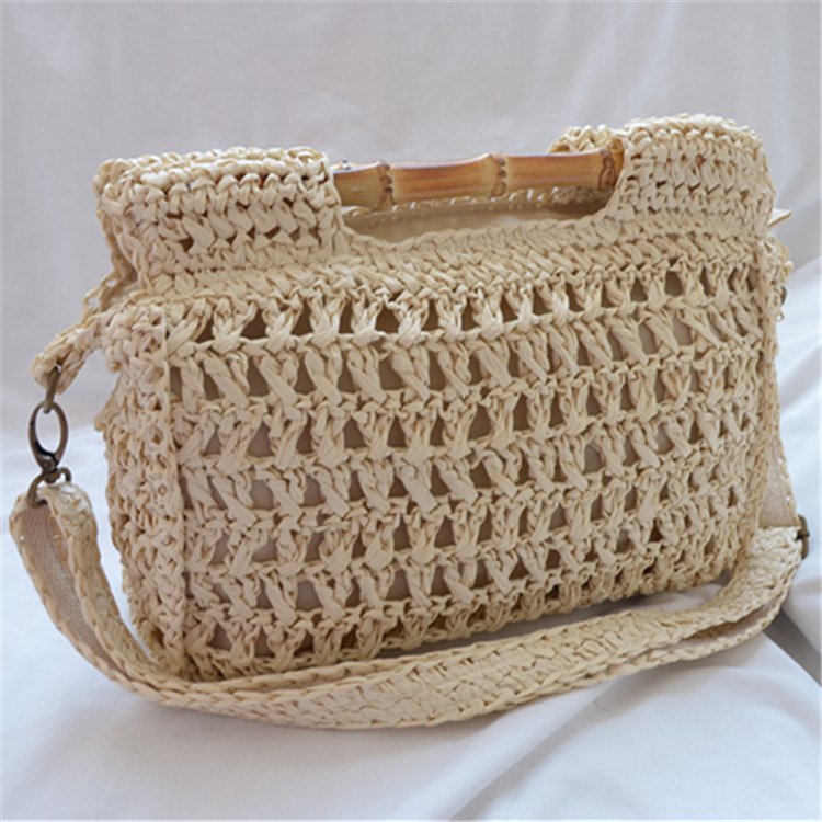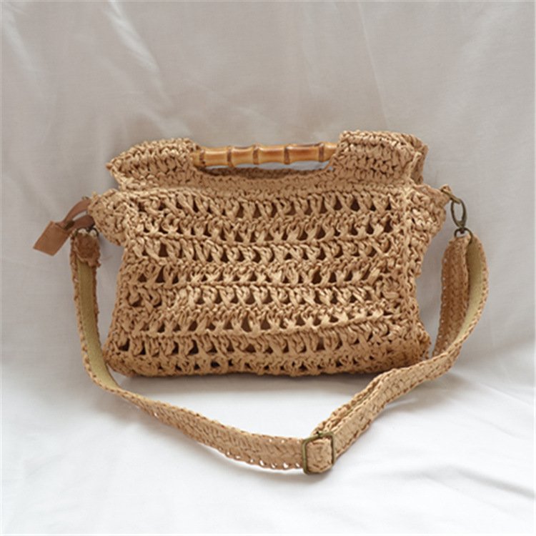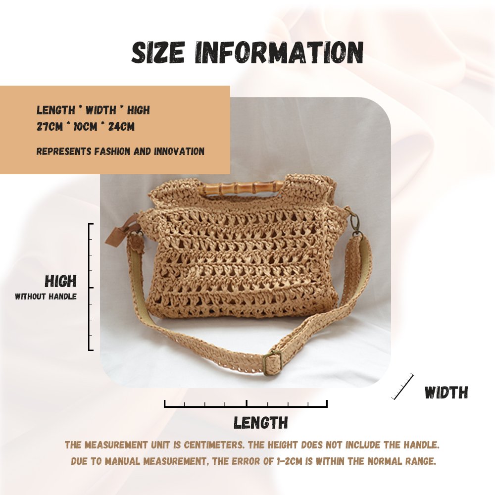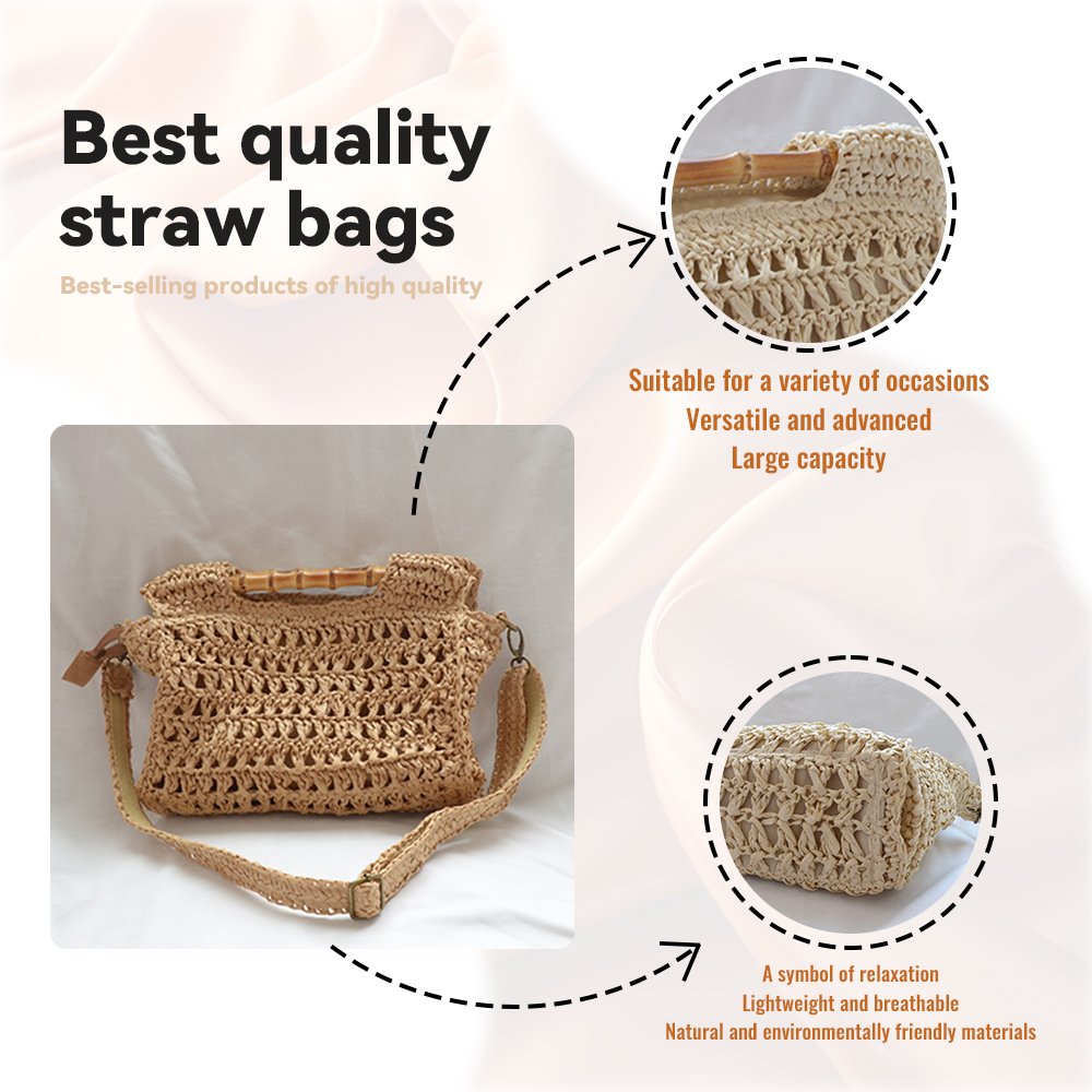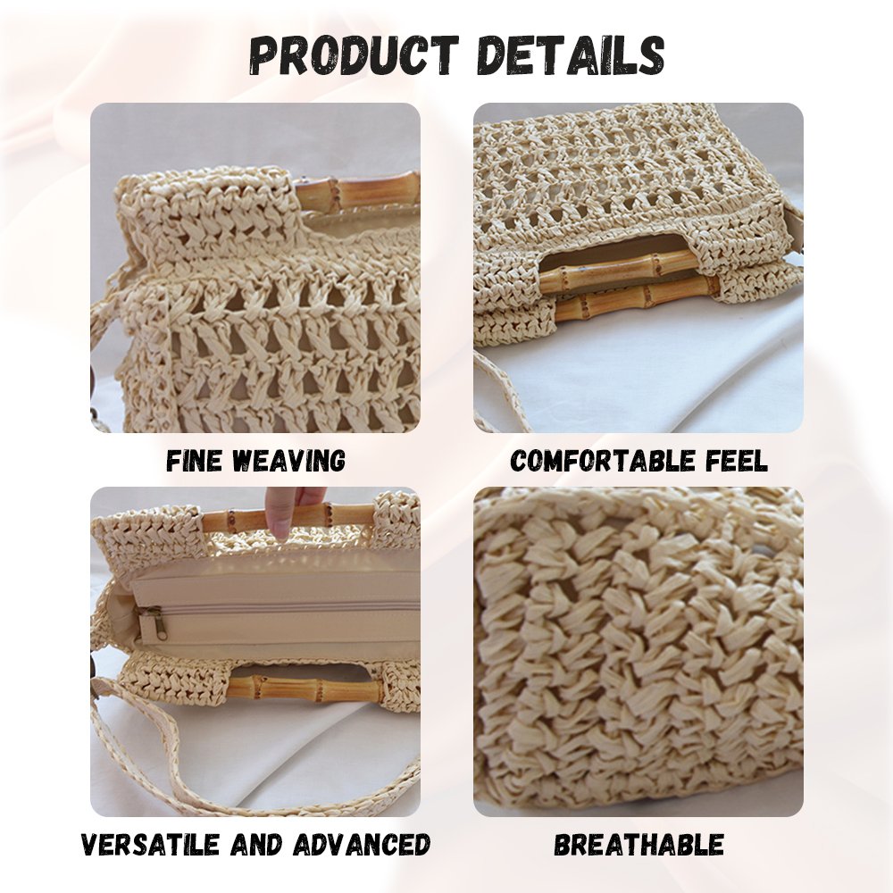 Bamboo handle fashion shoulder bag,Exquisite hand-woven craftsmanship, Lightweight and breathable, Suitable for a variety of occasions, Versatile and advanced, Summer bag, Beach day essential, Everyday casual bag, Minimalist natural bag