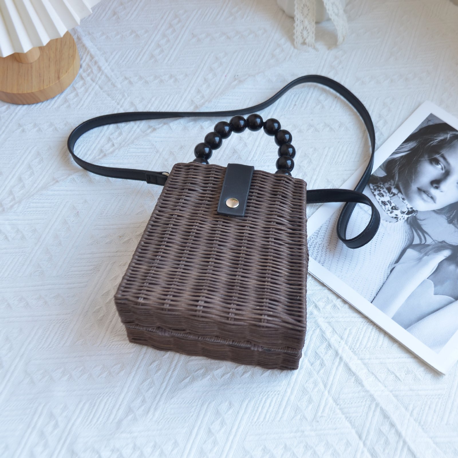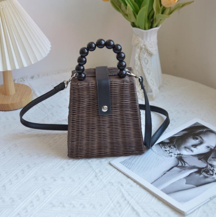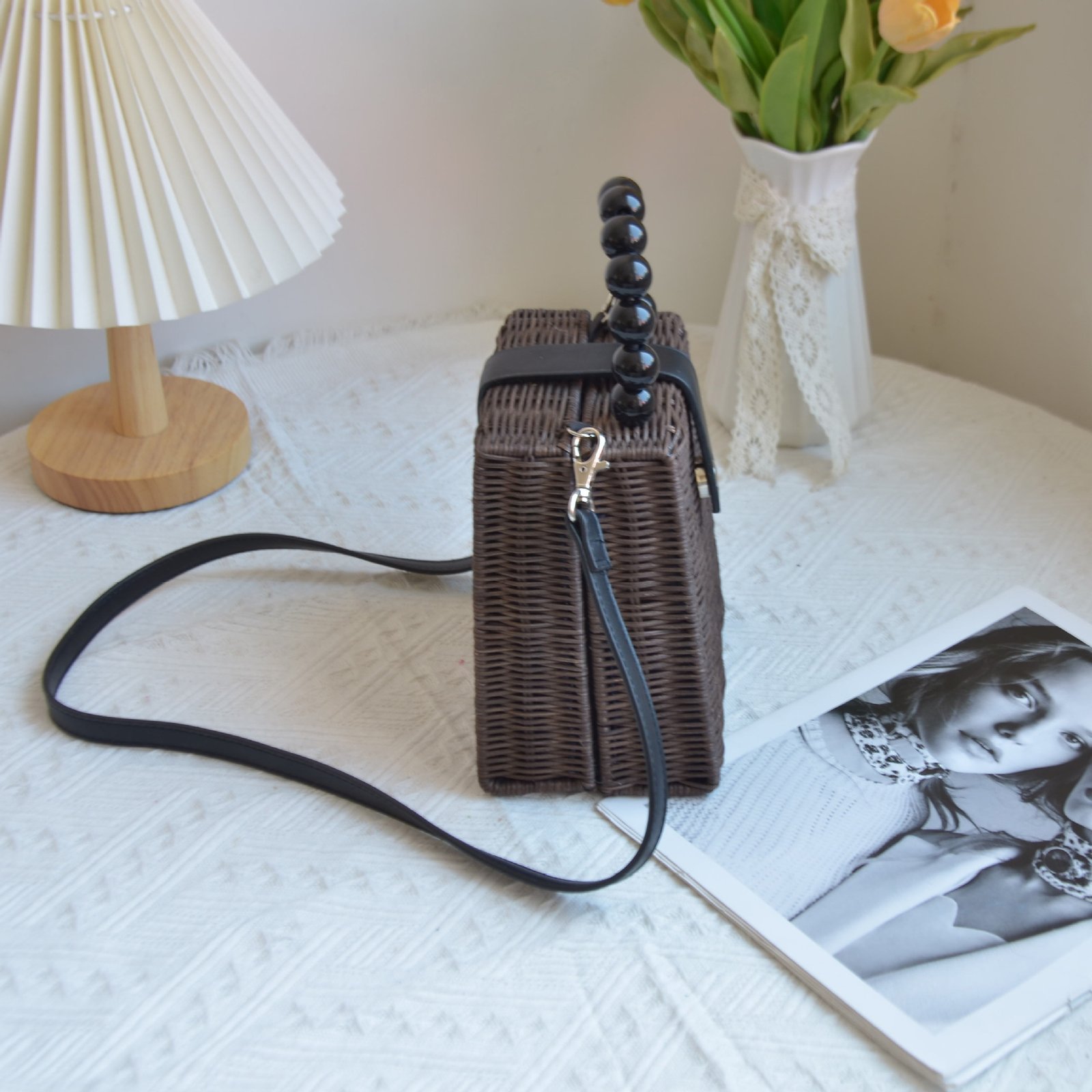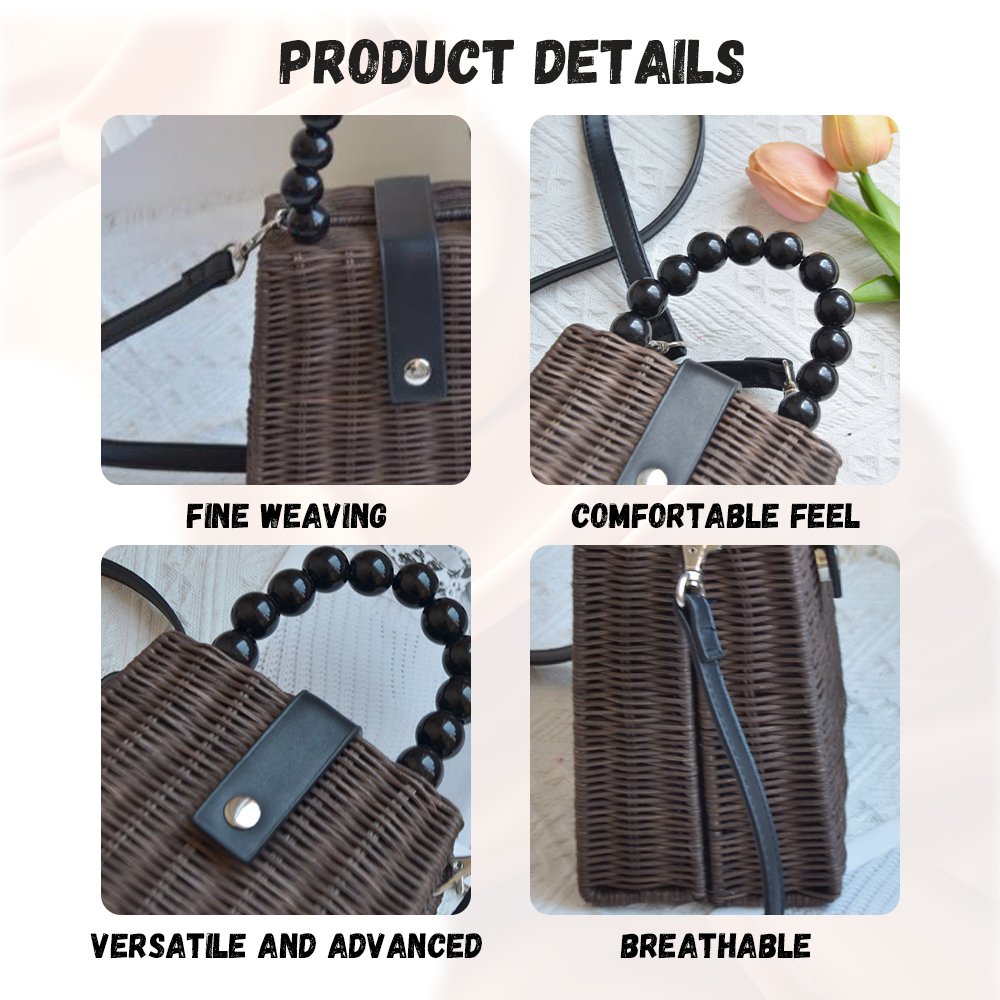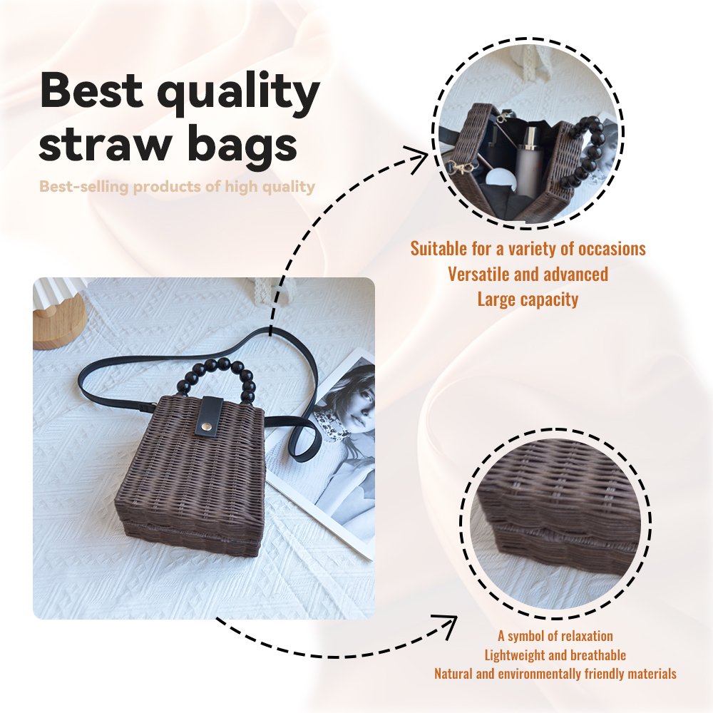 Vintage rattan woven crossbody tote with premium handles,Suitable for a variety of occasions, Versatile and advanced, Weekend getaway bag, Everyday casual bag, Holiday outfit accessory, Minimalist natural bag, Resort style bag, Straw bag with handle